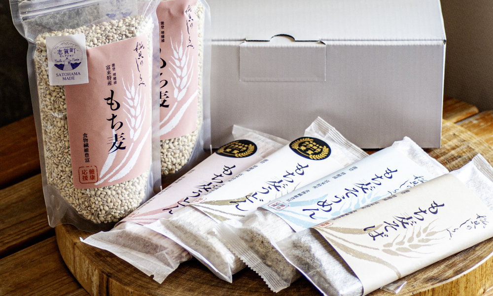もち麦麺詰合せ(蕎麦・素麺・うどん)●もち麦はさまざまな健康作用が期待されている優れた食材です。石川県志賀町相神で丹精込めて育てられた『もち麦』を使用した麺類の詰め合わせをお楽しみください。
